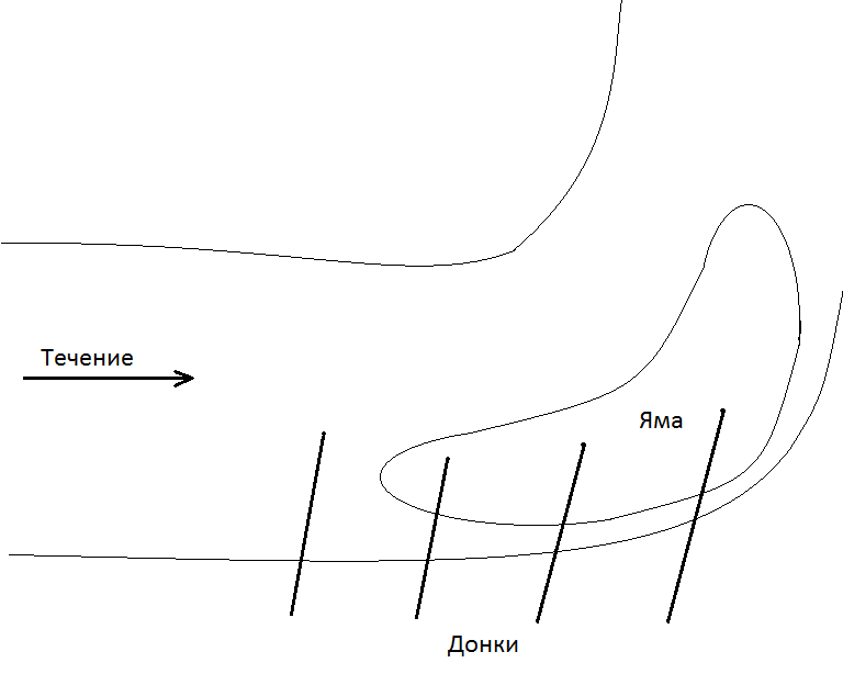 Закидывать донки необходима чуть выше по течению, и каждую последующию