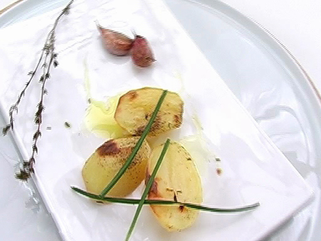 Печеная картошка Доброе блюдо на все времена.Состав:очищенная картошка — 8 штук;свежий тимьян — 6 веточек;зеленый лук — 1 пучок;сок одного лимона;чеснок — 3 зубчика;нерафинированное оливковое масло, соль, черный перец — по вкусу.